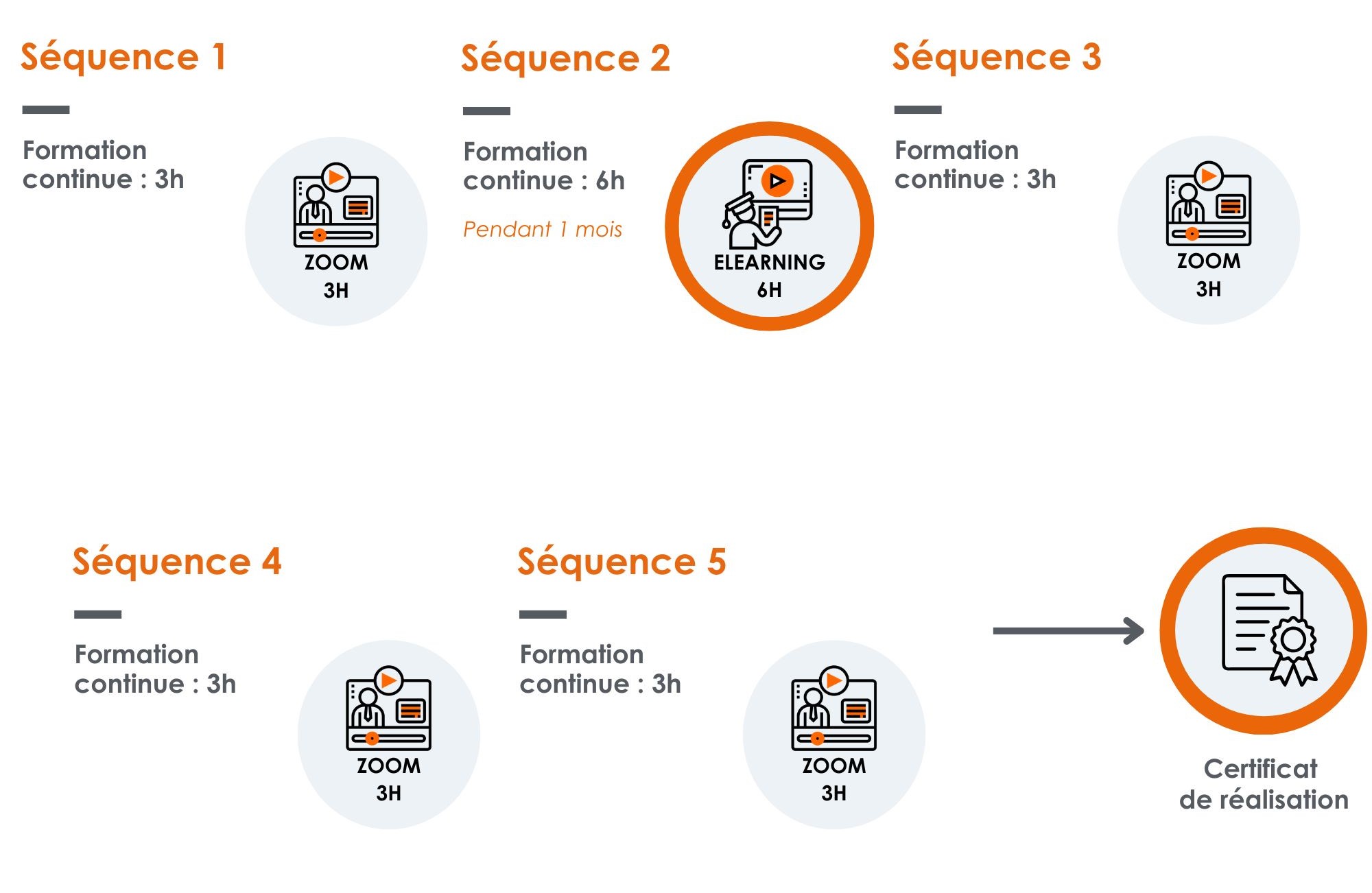 Format : Classes virtuelles : en direct via ZOOM + E-learning (accès en illimité aux cours en ligne)